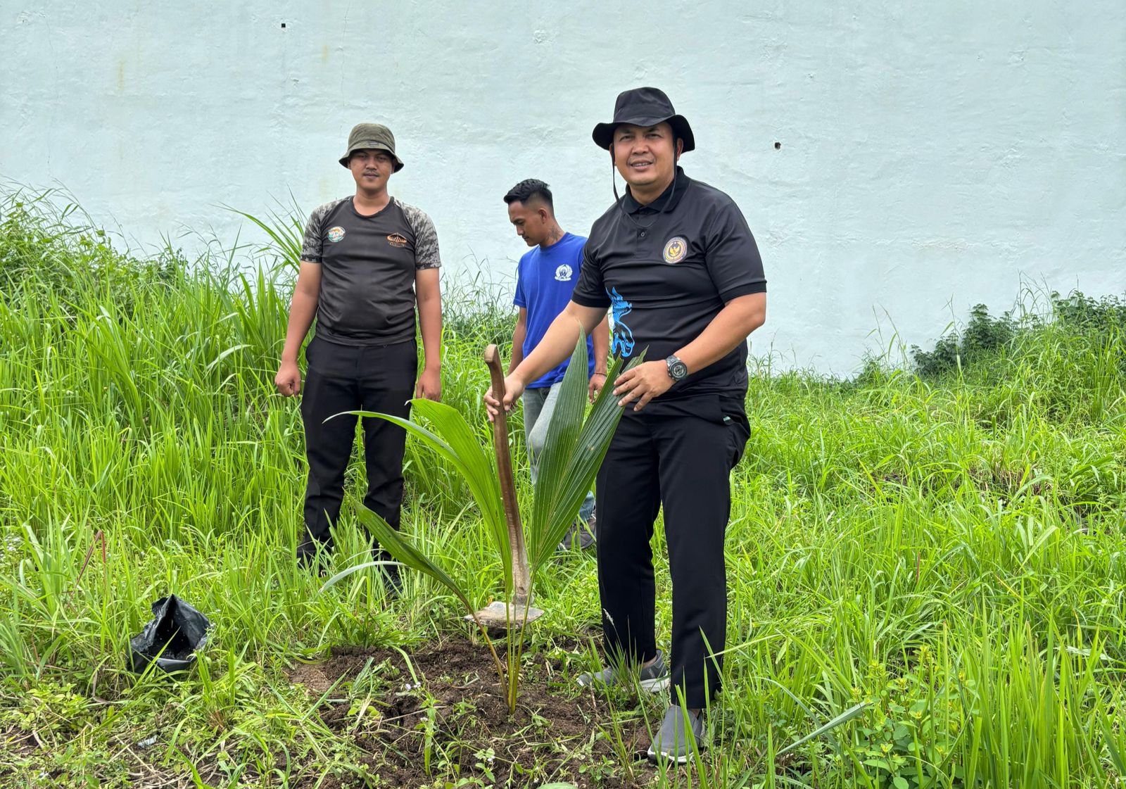 Lapas Narkotika Kelas IIA Bandar Lampung melaksanakan penanaman pohon kelapa di kawasan sekitar lapas sebagai wujud implementasi program Kementerian Imigrasi dan Pemasyarakatan Republik Indonesia dalam memperkuat ketahanan pangan nasional.