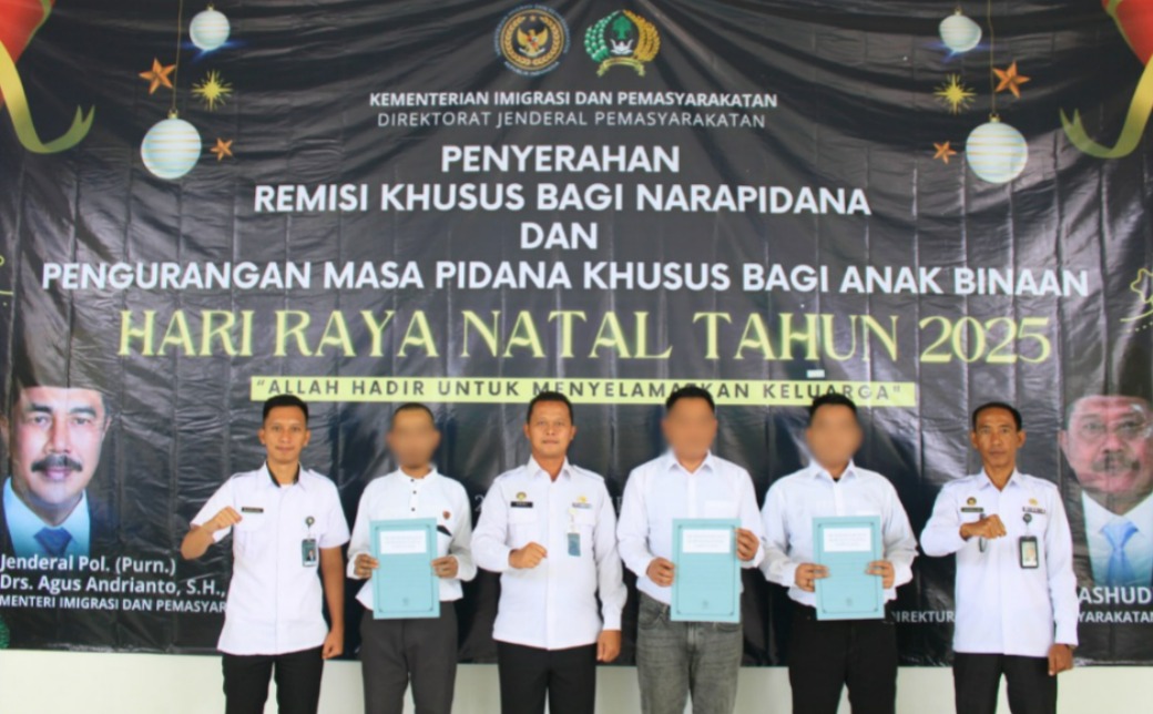 Tanggamus – Dalam rangka memberikan penghargaan atas perubahan perilaku dan kepatuhan selama menjalani masa pidana, Lembaga Pemasyarakatan (Lapas) Kelas IIB Kotaagung menyelenggarakan Kegiatan Pemberian Remisi Khusus Hari Raya Natal Tahun 2025. Kegiatan yang berlangsung pada Kamis, (25/12/2025), di Aula Lapas Kotaagung tersebut menetapkan 3 orang Warga Binaan sebagai penerima Remisi Khusus Natal setelah dinyatakan memenuhi persyaratan administratif dan substantif sesuai ketentuan yang berlaku.