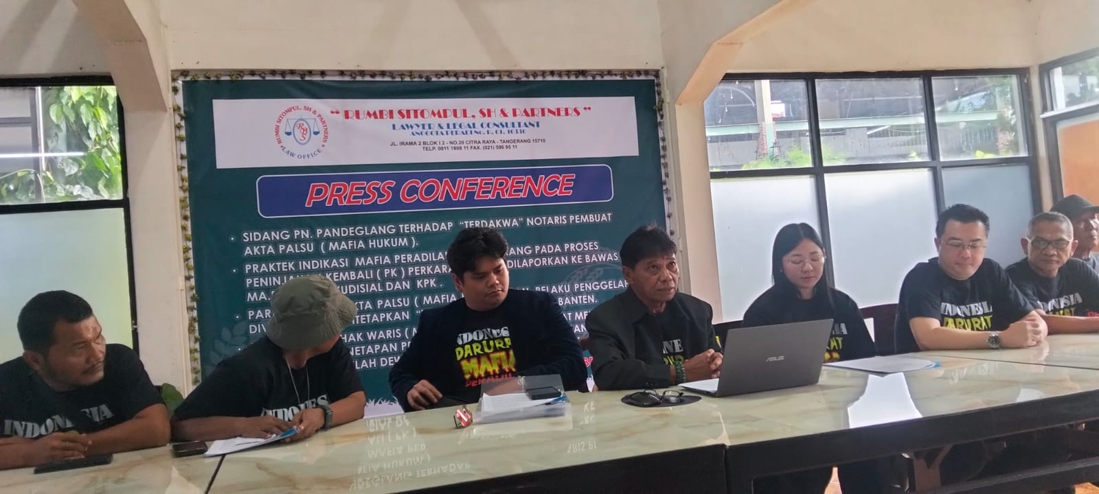 Hal ini disampaikan Rumbi dalam konferensi pers, Jumat (27/2/2026) di Kantor Lawyer Rumbi Sitompul and Partner Kota Cilegon.