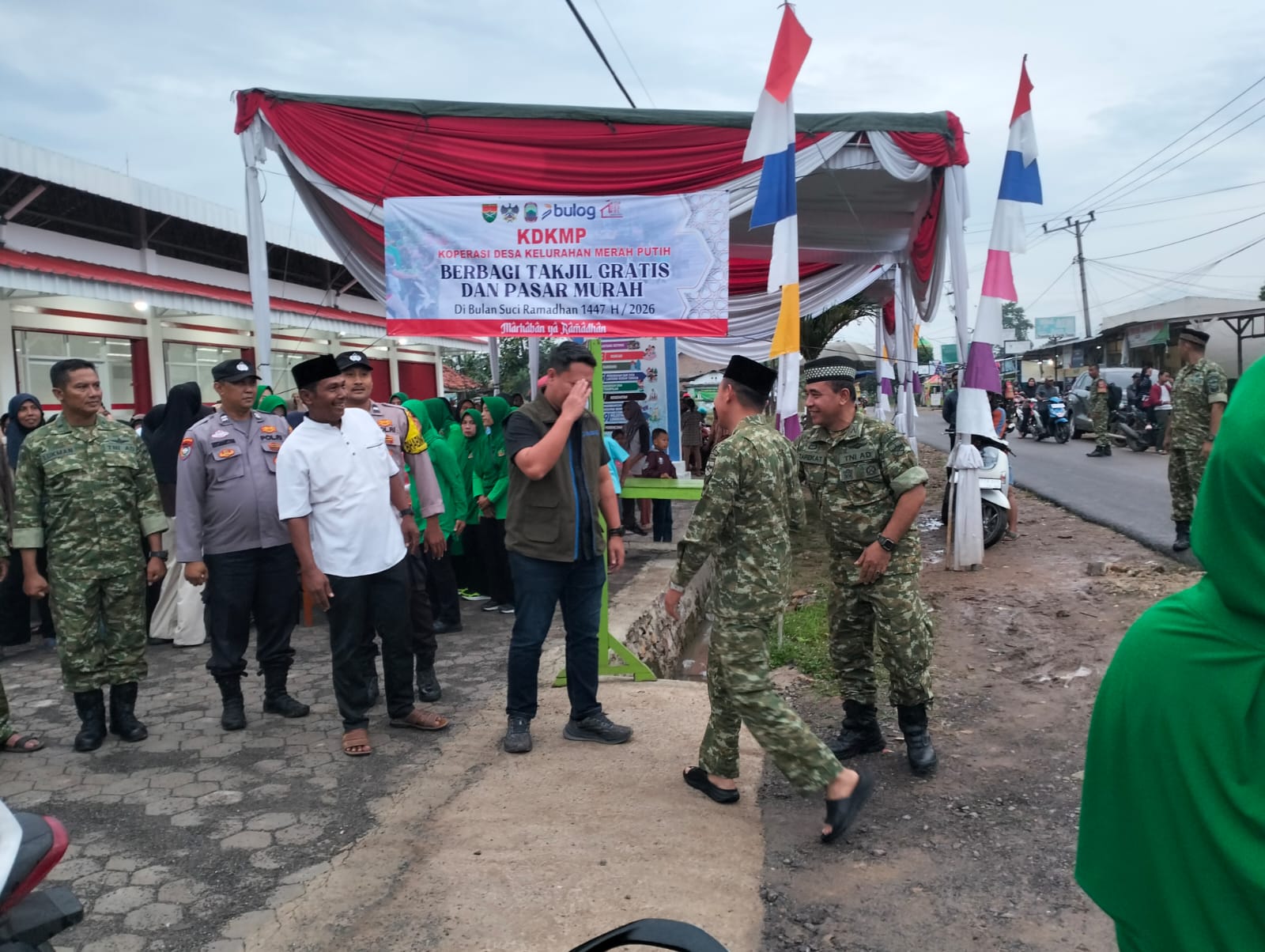 JATI AGUNG–Dandim 0421/Lampung Selatan Letkol Kav Nuril Ambiyah, S.H., M.I.P, menghadiri kegiatan Bazar Sembako Murah dan Berbagi Takjil dalam rangka menyemarakkan Bulan Suci Ramadhan 1447 H yang dilaksanakan di lokasi KDKMP Desa Marga Agung, Kecamatan Jati Agung. Lampung Selatan. Sabtu (28/02/2026).